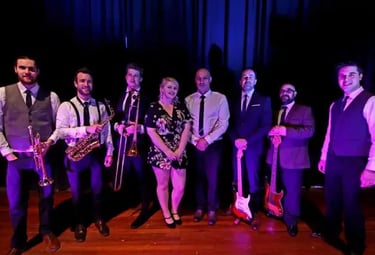 Versatility is at the heart of the Midnight Rouge experience, offering everything from an intimate 4-piece core to the cinematic sound of an 8-piece showband. Our 7 and 8-piece options feature a powerhouse live brass section (Sax, Trumpet, and Trombone), delivering the authentic, high-voltage funk that keeps the dancefloor packed. With incredible female vocals and a world-class rhythm section, we bring a legendary energy to your wedding day.
